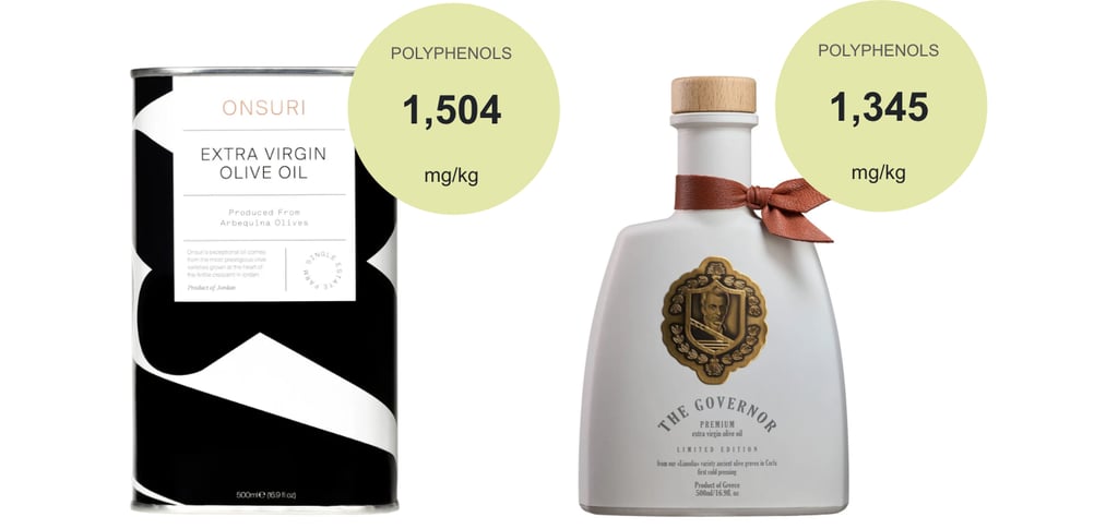 The quality of these two oils is pretty much on par and stand at the very top for high polyphenol olive oils. Onsuri has the higher total polyphenol count and highest Oleacein count, while the Governor has a higher polyphenol count for inflammation properties.