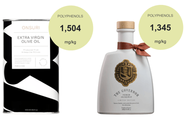 The Governor has also released their 2/26 harvest analysis report. Their premium extra virgin olive oil for this years harvest has a total polyphenol count of 1,345mg/kg. Priced at £45.99 for 500ml you are certainly paying for their luxury packaging when looking at their polyphenol count vs that of Onsuri.
