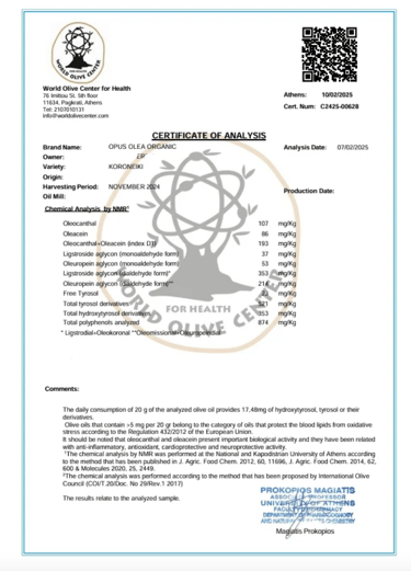 Health Claim EU 432/2012: Yes. Daily consumption of 20g of this premium olive oil protects the blood lipids from oxidative stress, according to the Regulation 432/2012 of the European Union.